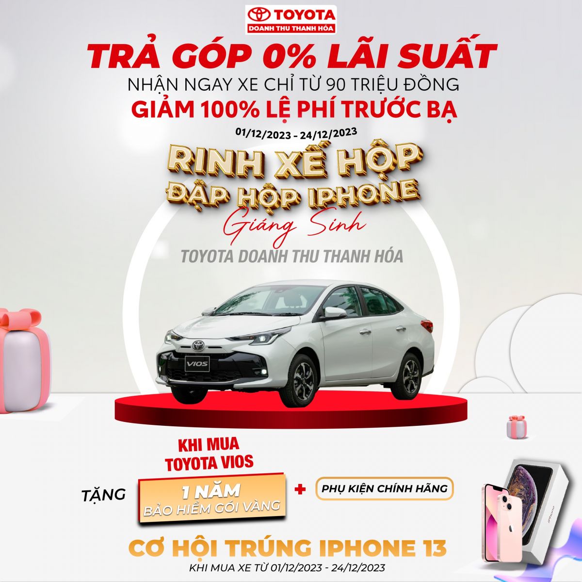 Cơ Hội Vàng Săn Xe Toyota - Rinh Ngay Iphone 13 cùng nhiều giải thưởng, quà tặng hấp dẫn. Duy nhất chỉ có tại Toyota Doanh Thu Thanh Hóa trong tháng 12
