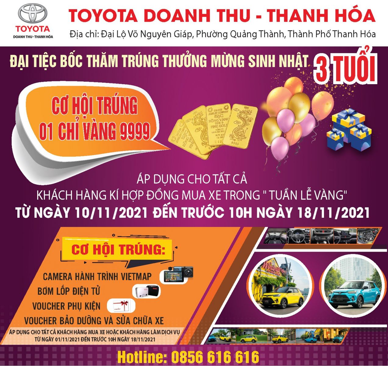 MỪNG SINH NHẬT 3 TUỔI, TOYOTA DOANH THU- THANH HÓA triển khai chương trình “TRI ÂN KHÁCH HÀNG” với nhiều ưu đãi: