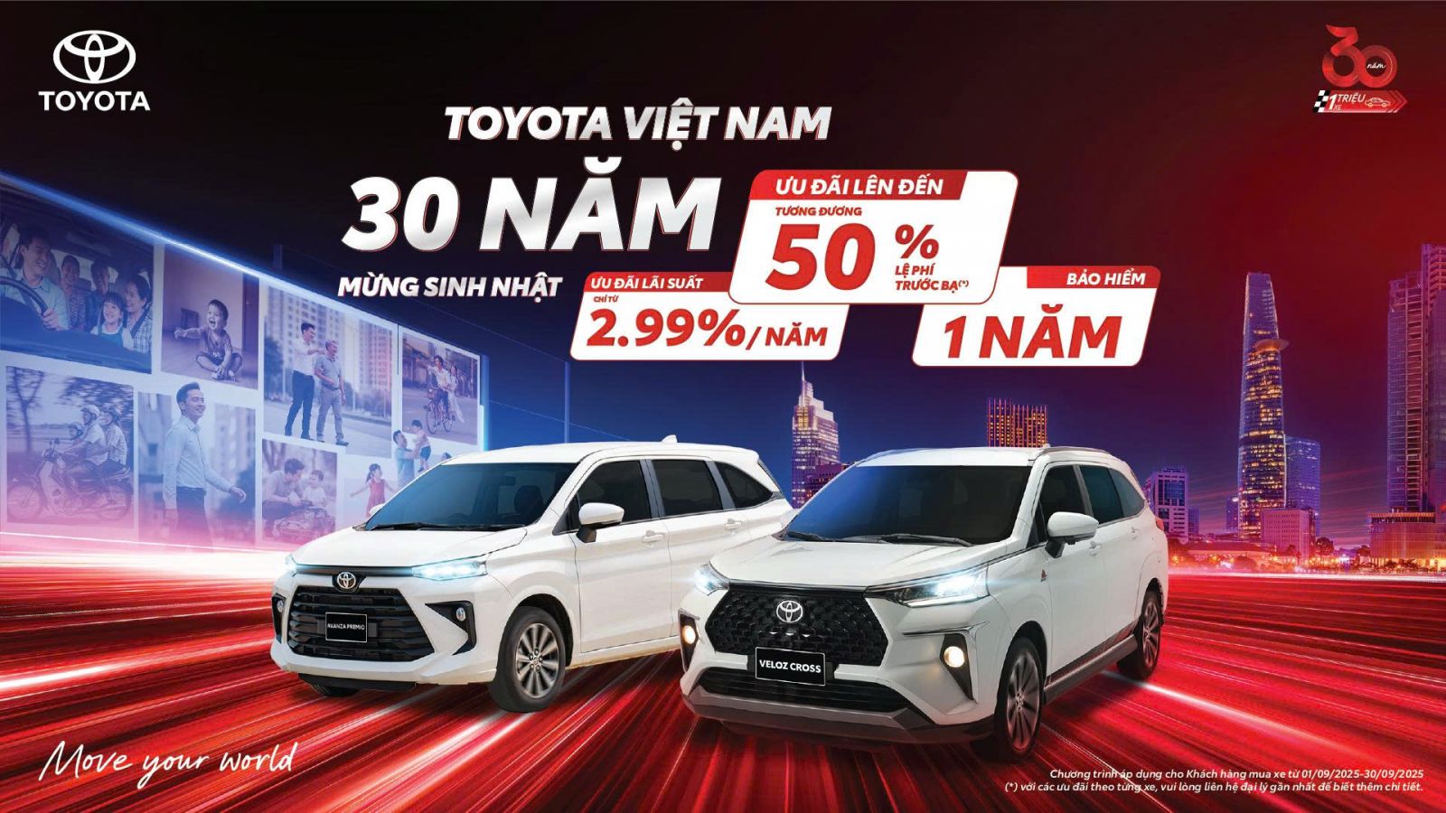 Chương trình được triển khai trong bối cảnh Toyota đón sinh nhật 30 năm vào tháng 9 và tri ân khách hàng Việt nhân kỷ niệm 80 năm Cách mạng Tháng Tám và Quốc khánh 2/9. Sau 3 thập kỷ, hơn 1 triệu xe Toyota đang lăn bánh trên khắp cả nước, trở thành bạn đồng hành tin cậy của nhiều gia đình.