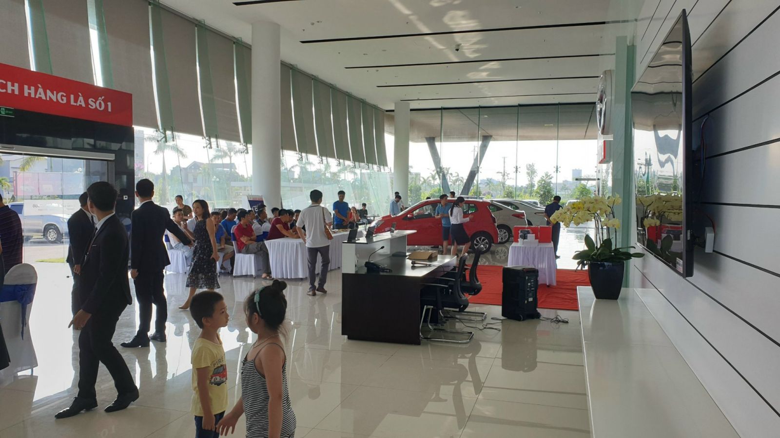 ( Xe khách đến sự kiện kín bãi đỗ xe trước cửa Đại Lý)