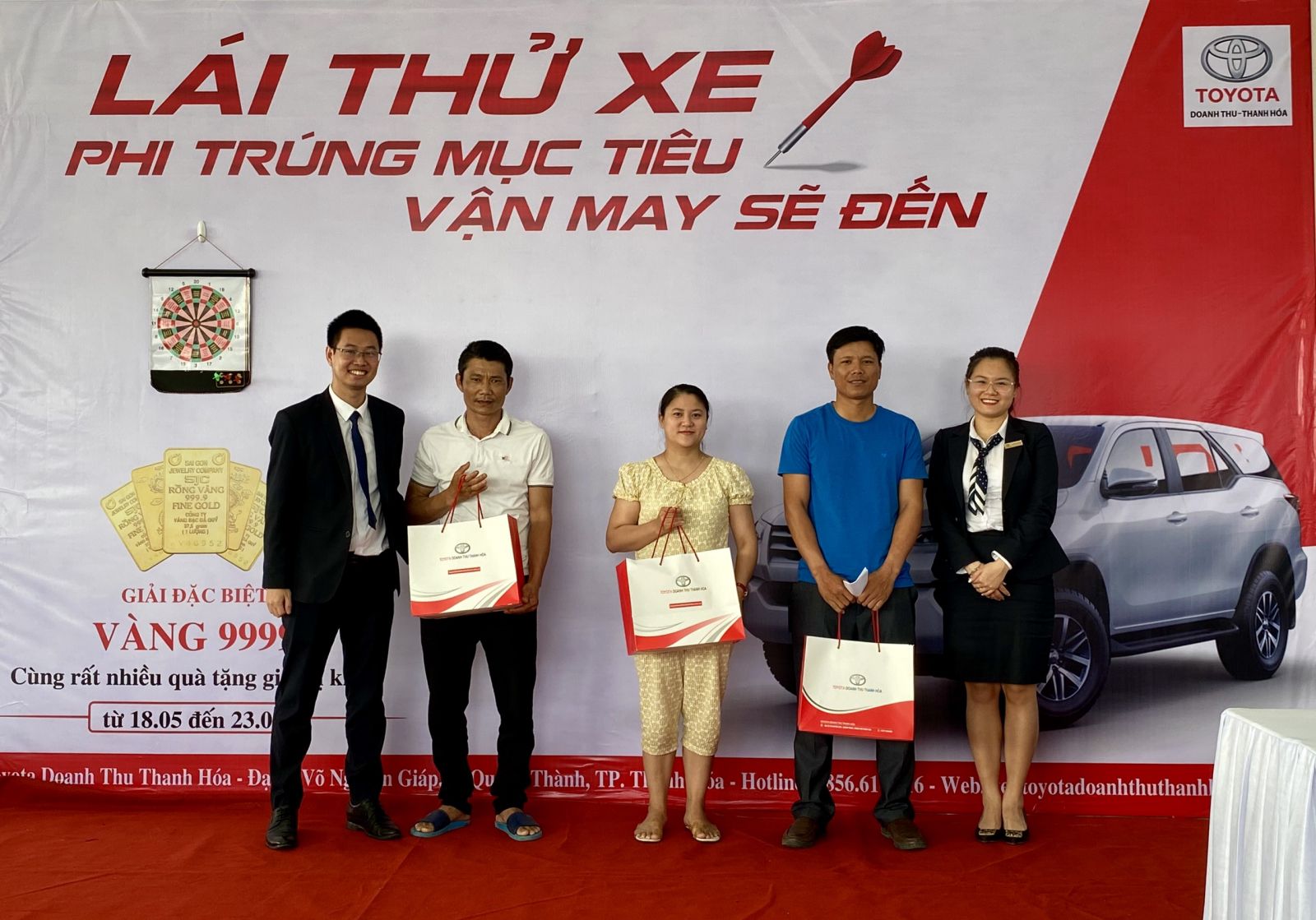 Sự kiện " Lái thử xe - Phi trúng mục tiêu, vận may sẽ đến" tổ chức với mong muốn mang đến những trải nghiệm thực tế khi khách hàng trực tiếp lái những mẫu xe mới nhất của Toyota như Fortuner, Vios, Innova, Wigo.... Đồng thời, sự kiện cũng là cơ hội để Đại lý Toyota Doanh Thu Thanh Hóa cảm ơn quý khách hàng vẫn luôn tin tưởng, theo dõi, đồng hành cùng Đại lý khi thời gian dịch bệnh Covid bị ảnh hưởng và trong suốt gần 2 năm hoạt động của Đại lý;