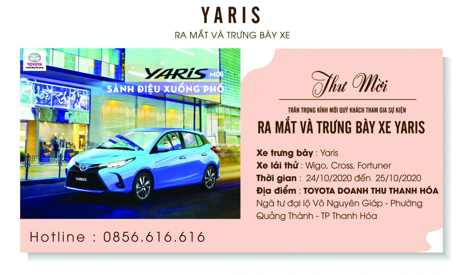 Thông báo về sự kiện trưng bày xe Yaris từ ngày 24/10/2020 đến 25/10/2020