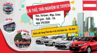Toyota Doanh Thu- Thanh Hóa xin kính mời Quý khách hàng tới tham dự chương trình " LÁI THỬ XE" tại Huyện Yên Định Thời gian: 7h30-17:00 ngày 7/11/2020 Địa điểm: Cafe Hưng Phát- Khu Phố 4-Thị Trấn Quán Lào, Yên Định