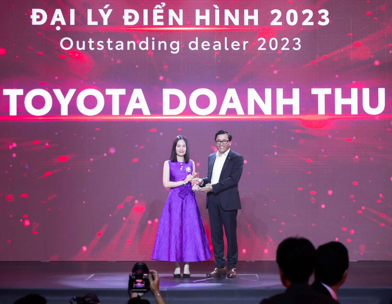 Đại diện Toyota Việt Nam (bên phải) trao giải thưởng Đại lý Điển hình cho Toyota Doanh Thu - Thanh Hóa