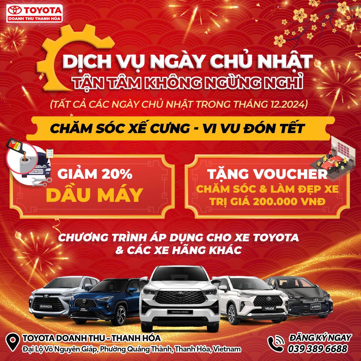 Toyota Doanh Thu Thanh Hóa - Mở cửa làm dịch vụ ngày chủ nhật trong tháng 12.2024