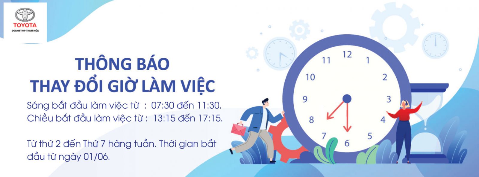 Toyota Doanh Thu Thanh Hóa thông báo về việc " Thay đổi giờ làm việc của khối Dịch Vụ" áp dụng từ ngày 01/06/2021