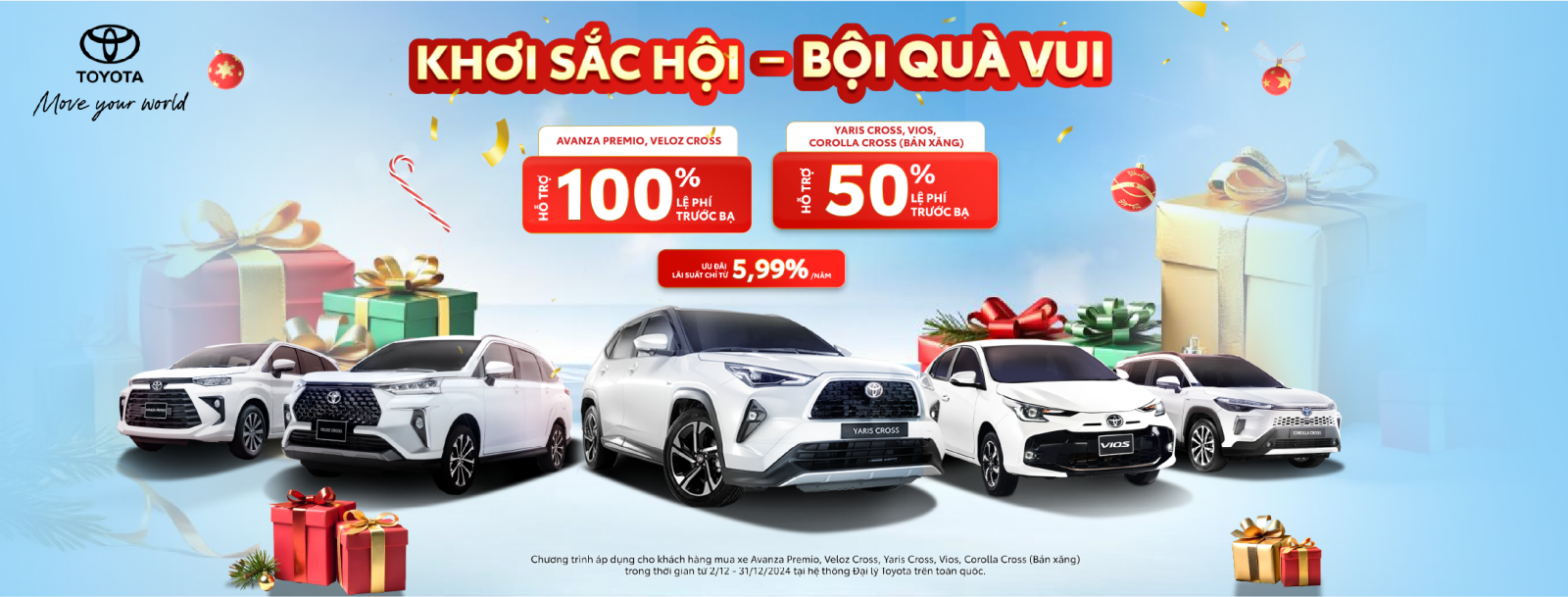 Tháng cuối cùng của năm 2024, Toyota Việt Nam cùng Toyota Doanh Thu- Thanh Hóa tiếp tục tăng tốc với chương trình ưu đãi lên tới 100% lệ phí trước bạ cho một số mẫu xe, gia tăng khoảng cách trên bảng xếp hạng doanh số, khẳng vị thế dẫn đầu thị trường.