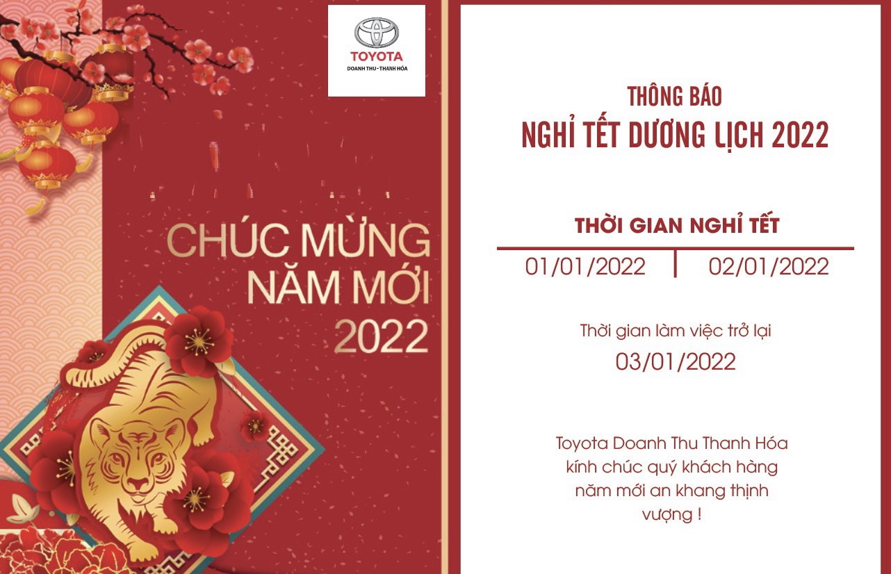 Toyota Doanh Thu- Thanh Hóa thông báo lịch nghỉ tết Dương Lịch năm 2022