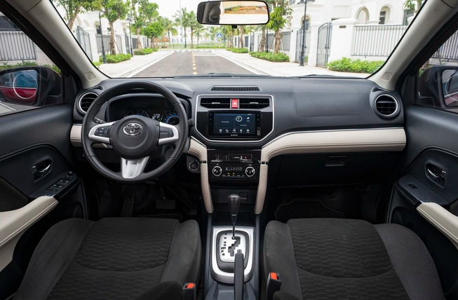 "Đắt xắt ra miếng" với Toyota Rush còn thể hiện ở khoang nội thất rộng rãi và tiện nghi. Xe sở hữu 8 loa với chất lượng âm thanh đáng khen. Hệ thống điều hòa tự động cho khả năng làm lạnh sâu, mát nhanh và đều. Trong khi đó, màn hình giải trí 7 inch với đầy đủ các kết nối từ USB, Bluetooth cho đến Apple CarPlay và Android Auto.
