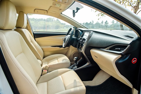 Khoang cabin Vios cũng được chăm chút tỉ mỉ với ghế ngồi bọc da, vô-lăng bọc da và các tấm ốp viền bạc tạo cá tính. Tiện nghi trong xe hiện đại bậc nhất phân khúc với hệ thống đề nổ bằng nút bấm, màn hình cảm ứng hỗ trợ kết nối điện thoại thông minh, điều hoà tự động, vô-lăng tích hợp nút bấm, Cruise Control cùng màn hình màu đa thông tin sau vô-lăng.