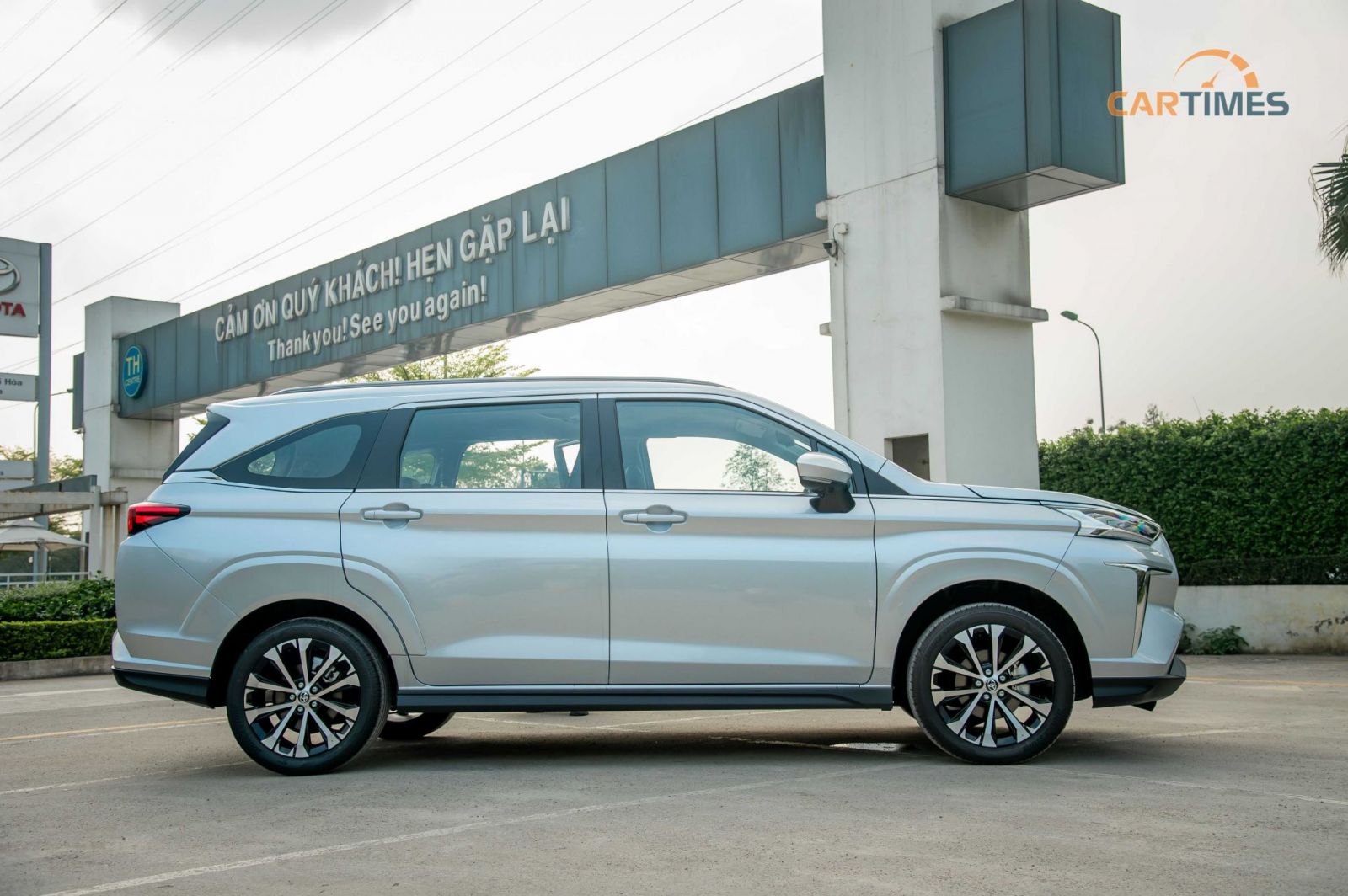 Điểm nhấn bên hông xe là đường mạ chrome trải dài từ đầu xe tới cuối xe. Veloz Cross CVT Top sở hữu bộ mâm xe với kích cỡ lớn 17-inch cùng các đường gân dập nổi theo khung bánh xe