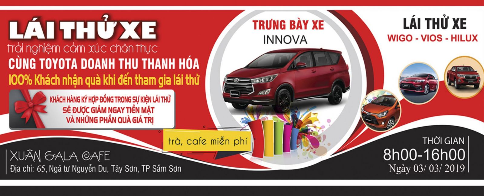 CHƯƠNG TRÌNH LÁI THỬ XE " TRẢI NGHIỆM CẢM XÚC CHÂN THỰC CÙNG TOYOTA DOANH THU THANH HÓA"