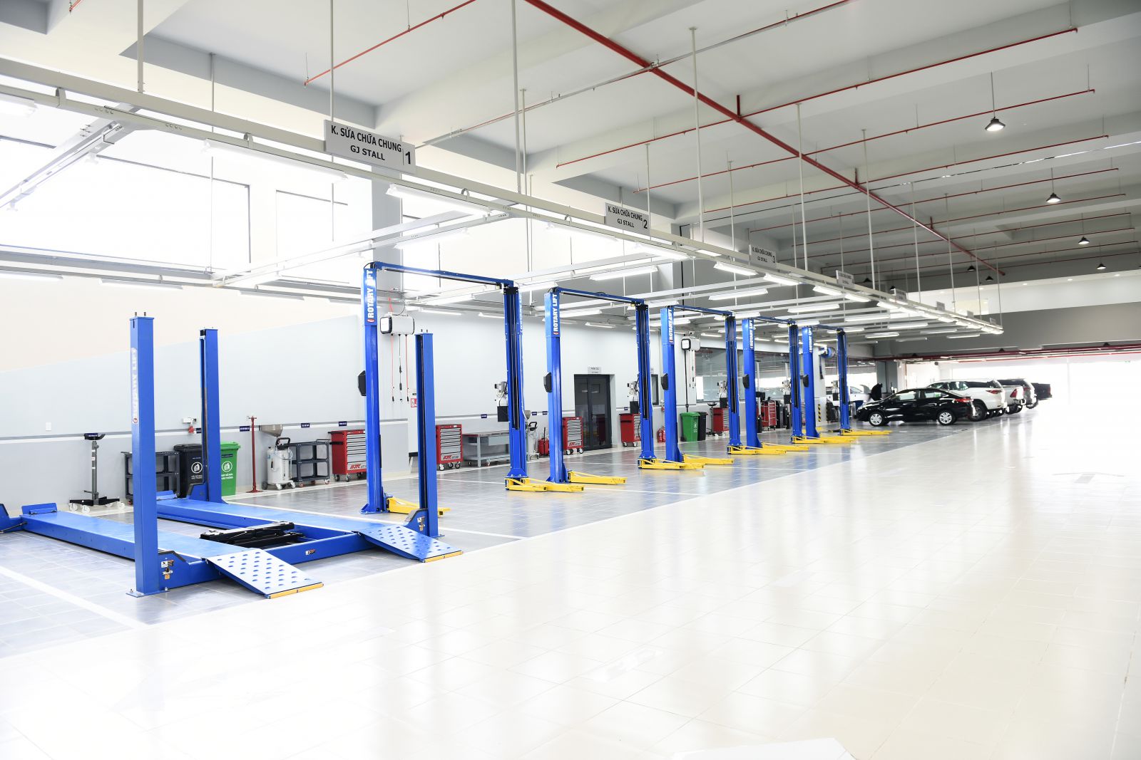 Khu vực sữa chữa, bảo dưỡng với diện tích 4963 m² được đầu tư máy móc hiện đại nhất, cùng đội ngũ kỹ thuật viên giàu kinh nghiệp và hệ thống trang thiết bị sữa chữa được nhập khẩu từ Tây Ban Nha, Ý, Nhật Bản… Với không gian dịch vụ gồm 16 khoang sửa chữa chung, 26 khoang đồng sơn đáp ứng sữa chữa lên đến 20 xe ôtô tại cùng thời điểm. Đây là điều mà không phải Đại lý nào của Toyota cũng có thể đáp ứng được 2 tiêu chí lớn nhất: Không gian phục vụ - Chất lượng phục vụ.
