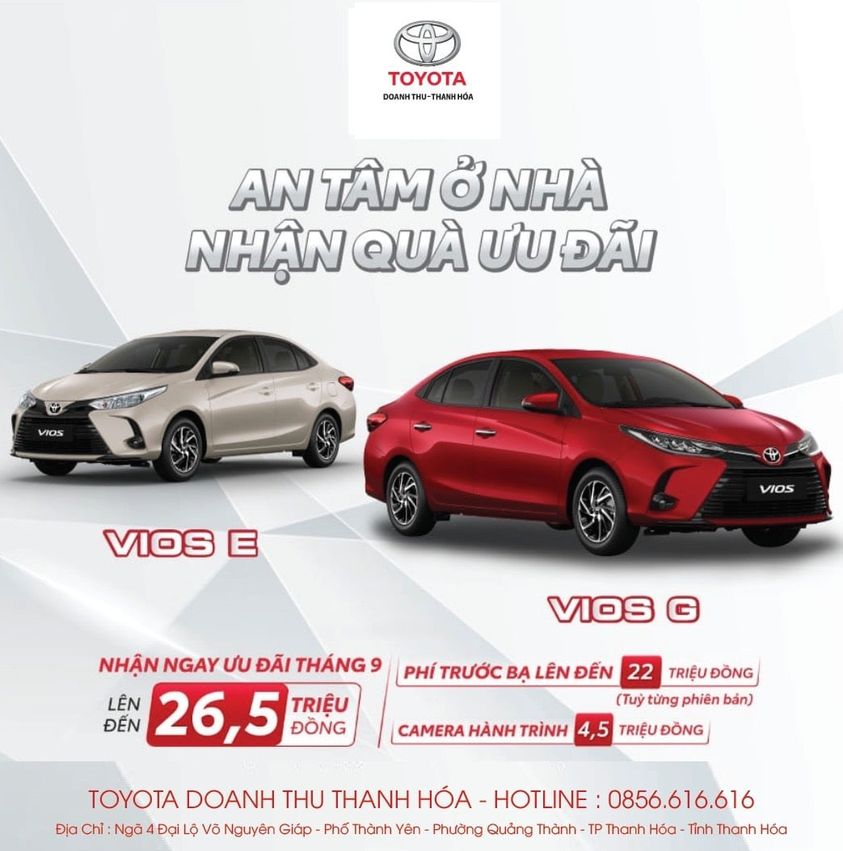 Để tiếp tục duy trì lợi ích cho người mua xe và tăng thêm sức hấp dẫn, sức cạnh tranh so với các đối thủ cùng phân khúc, tháng 9/2021, Toyota Doanh Thu- Thanh Hóa tiếp tục triển khai chương trình ưu đãi đặc biệt cho khách hàng mua xe vios trong tháng 9/2021.