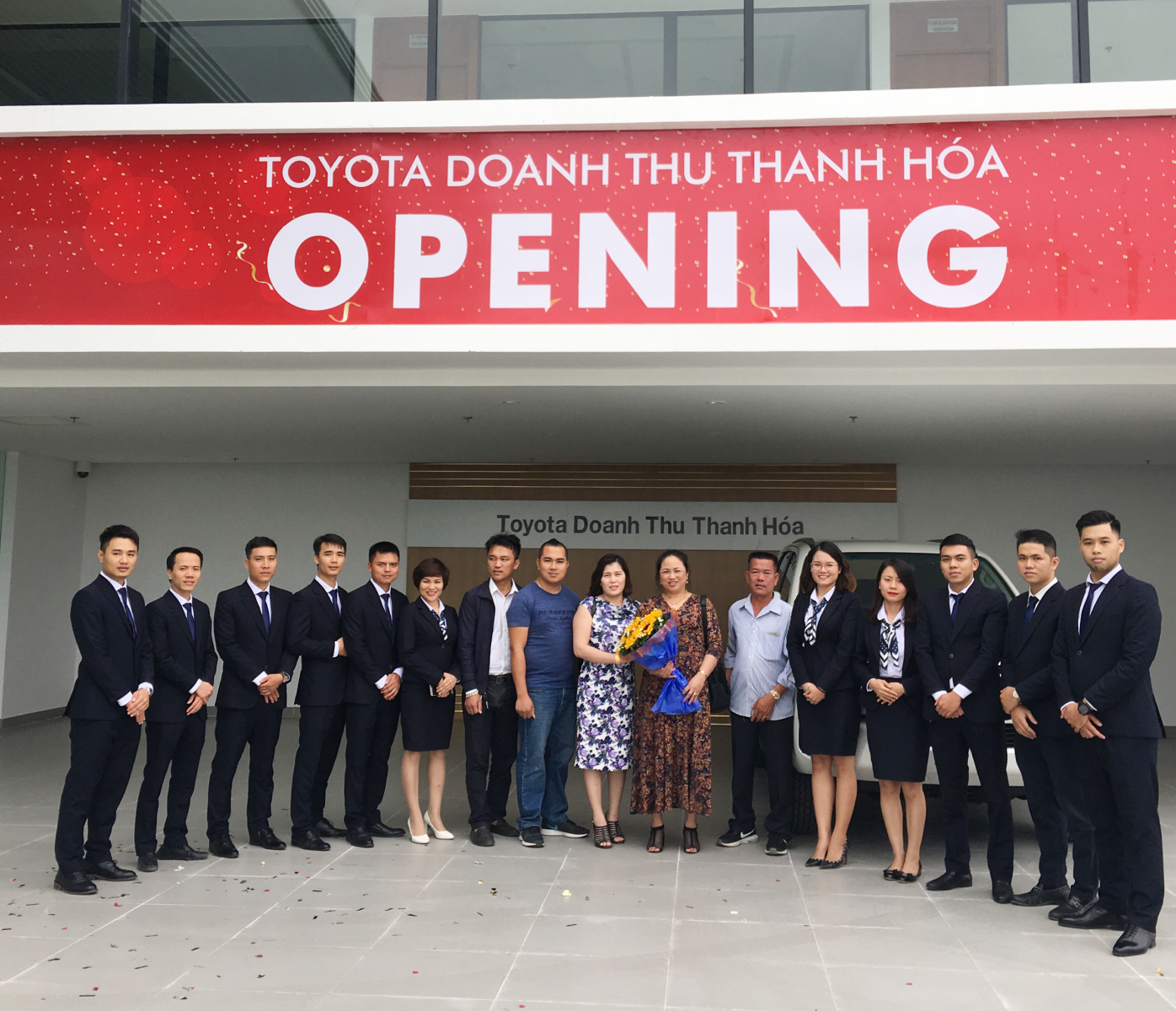 Ngày 18/10/2018, Đại lý của Toyota Việt Nam (TMV) - Toyota Doanh Thu Thanh Hóa chính thức “Khai trương bán hàng” tại Showroom nằm trên Đại lộ Võ Nguyên Giáp, Quảng Thành, Thành phố Thanh Hóa. Là một đại lý hoàn toàn mới của Toyota Việt Nam , được đầu tư cơ sở vật chất hiện đại cùng đội ngũ nhân viên chuyên nghiệp, Toyota Doanh Thu Thanh Hóa đã thu hút được rất nhiều khách hàng quan tâm đến tham dự buổi “ Khai trương bán hàng”. Trong ngày bán hàng đầu tiên, chúng tôi đã đặt bút ký và trao chiếc xe Toyota Fortuner cho vị khách hàng đặc biệt nhân dịp phụ nữ Việt Nam 20/10: Chị Lê Thị Khoa – Hoằng Hóa, Thành phố Thanh Hóa