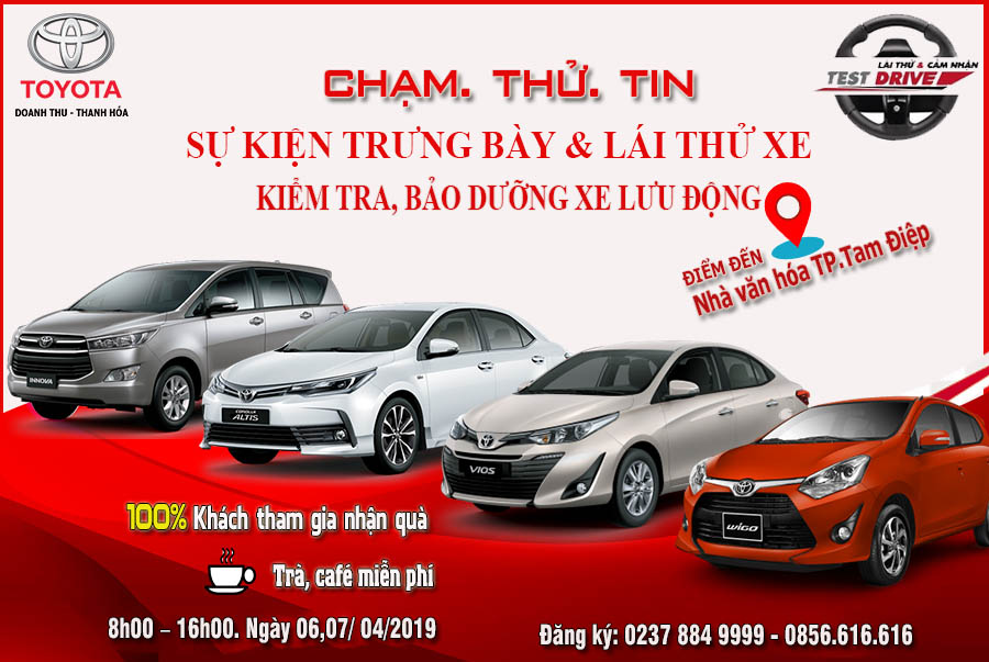 KÍNH MỜI QUÝ KHÁCH HÀNG TỚI THAM GIA SỰ KIỆN LÁI THỬ XE CHẠM. THỬ. TIN CÙNG TOYOTA DOANH THU THANH HÓA TẠI TP. TAM ĐIỆP, TỈNH NINH BÌNH!