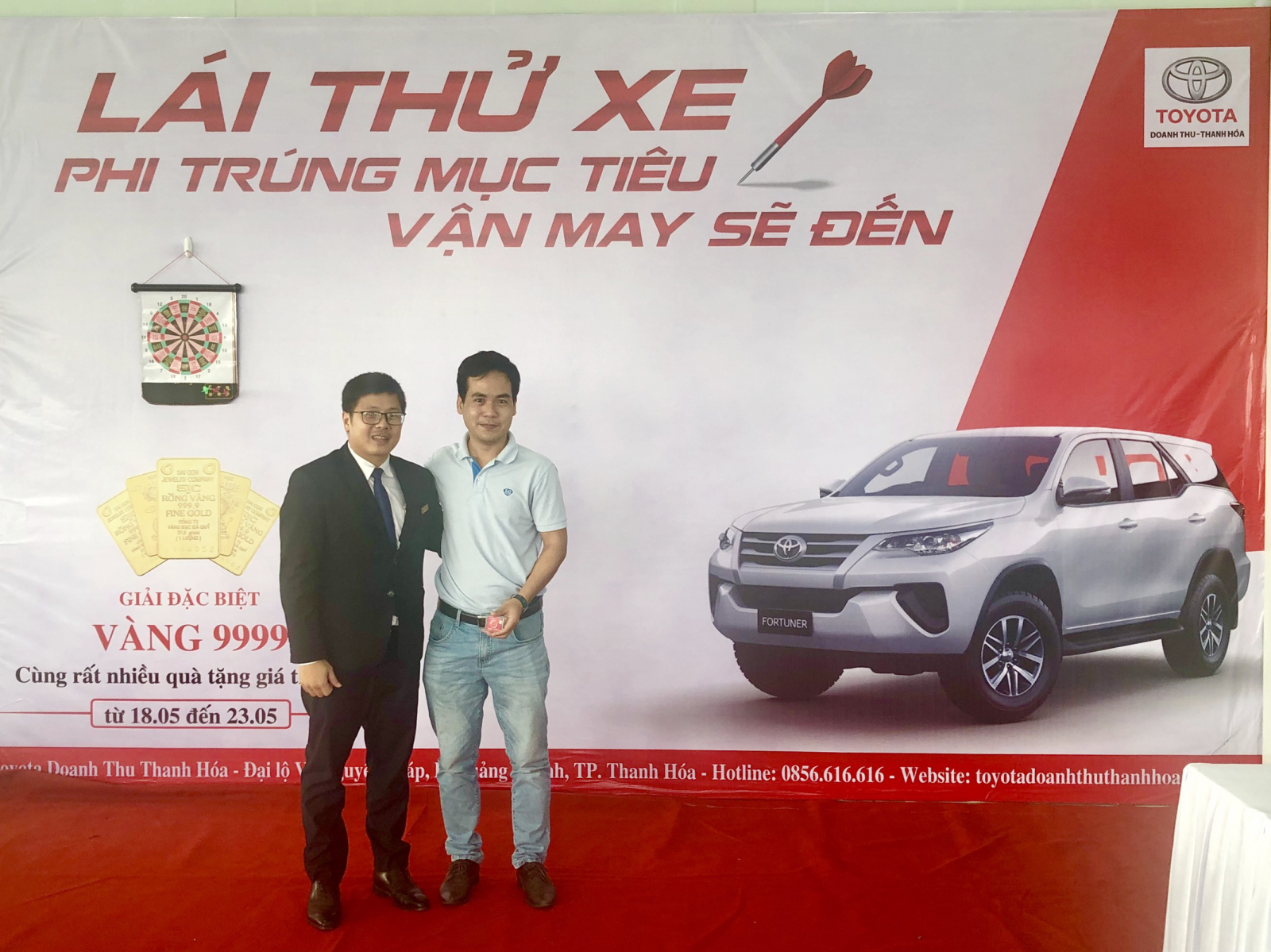 ( Khách hàng phi tiêu nhận quà cùng NVKD tại Đại lý Toyota Doanh Thu Thanh Hóa)