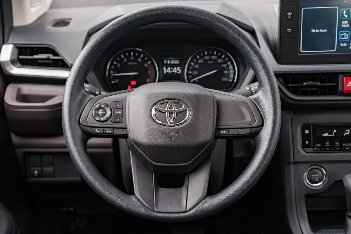 Vô-lăng 3 chấu tích hợp nút bấm chức năng, màn hình giải trí trung tâm kích thước 8 inch, màn hình TFT màu hiển thị đa thông tin ở cụm đồng hồ, đề nổ bằng nút bấm là những trang bị đáng chú ý. Do được định vị thấp hơn Veloz Cross nên xe chỉ có ghế nỉ và điều hòa cơ, cùng hệ thống âm thanh 4 loa, tuy vậy phần điều khiển điều hòa được thiết kế khá hiện đại.