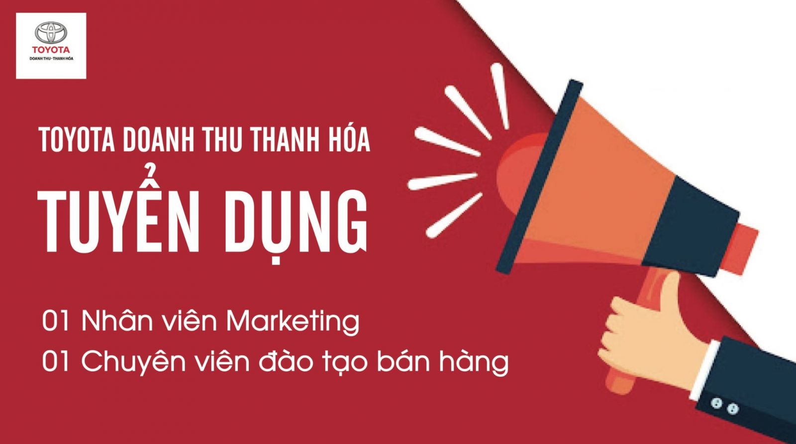 Công ty TNHH Toyota Doanh Thu - Thanh Hóa là đại lý chính thức phân phối các sản phẩm xe Toyota của Toyota Việt Nam tại thị trường Thanh Hóa. Chính thức đi vào hoạt động từ tháng 10 năm 2018. Toyota Doanh Thu đã và đang nhận được sự ủng hộ đáng trân trọng của quý khách trên toàn tỉnh. Hiện nay, do nhu cầu mở rộng kinh doanh và thị trường, Công ty TNHH Toyota Doanh Thu - Thanh hóa đang cần tuyển nhân sự ở các vị trí sau: