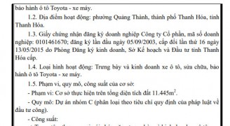 Giấy phép môi trường của Toyota Doanh Thu- Thanh Hóa