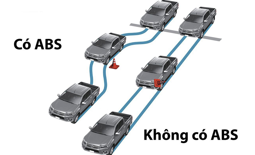 Phanh ABS chắc chắn không còn xa lạ với các tài xế nữa. Bằng việc sử dụng những cảm biến ở các bánh xe để phát hiện có bánh xe nào đó bó cứng khi đạp phanh, thì hệ thống điện tử sẽ mở van nhớt lại và mất kiểm soát, khi bánh xe còn lăn thì chúng ta vẫn có thể đánh lái tránh chướng ngại vật… Và cũng nhờ vào khả năng giữ bánh xe không bó cứng thì quãng đường phanh của xe cũng ngắn lại so với khi các bánh bị bó cứng và trượt trên đường.