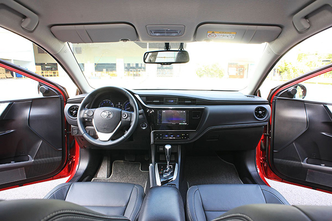 Toyota Corolla Altis được trang bị bảng táp lô hiện đại và thân thiện hơn với người dùng. Một số trang bị nổi bật của mẫu xe này gồm: màn hình hiển thị đa thông tin TFT 4.2 inch tái thiết kế dễ quan sát và sang trọng hơn, cửa điều hòa mới dạng cửa 5 sao, kết nối đa phương tiện, hệ thống thông tin giải trí T-Connect, hệ thống âm thanh DVD, Wifi cùng hệ thống định vị vệ tinh và điều hòa tự động 1 vùng.