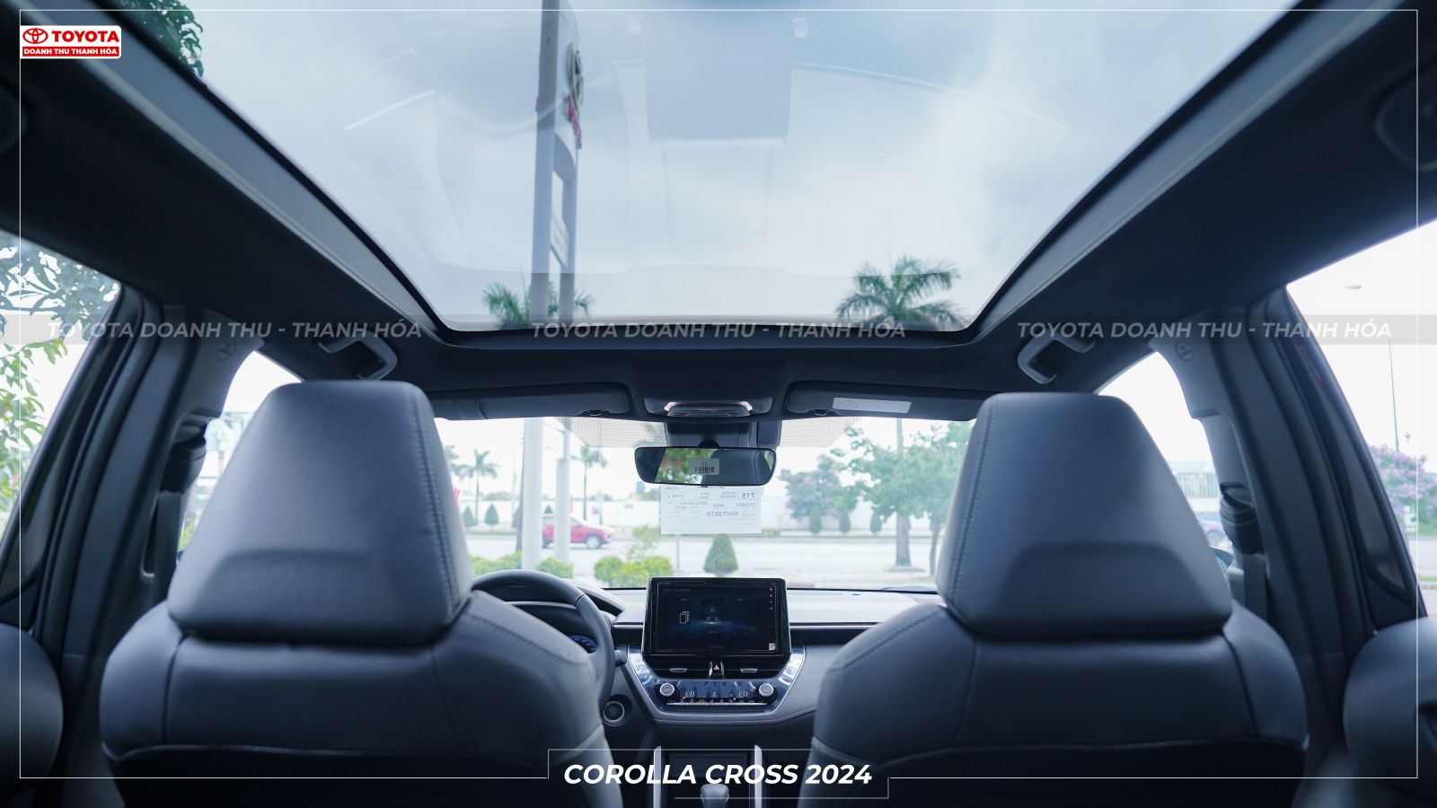 Chưa dừng lại ở đó, 2 phiên bản mới của Toyota Corolla Cross 2024 đều được trang bị cửa sổ trời toàn cảnh, giúp khoang nội thất trở nên cao cấp hơn. Ở phiên bản cũ, cửa sổ trời chỉ là loại bình thường dành riêng cho hàng ghế phía trước.