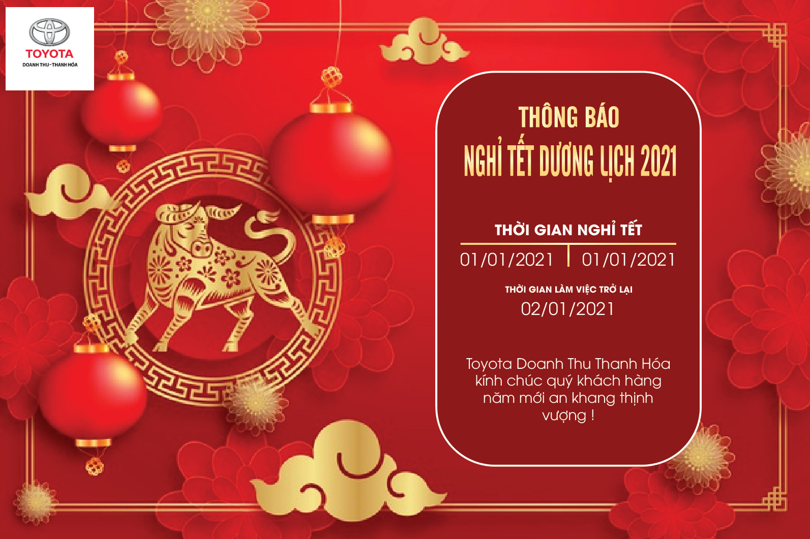 TOYOTA DOANH THU- THANH HÓA THÔNG BÁO THỜI GIAN NGHỈ TẾT DƯƠNG LỊCH 2021