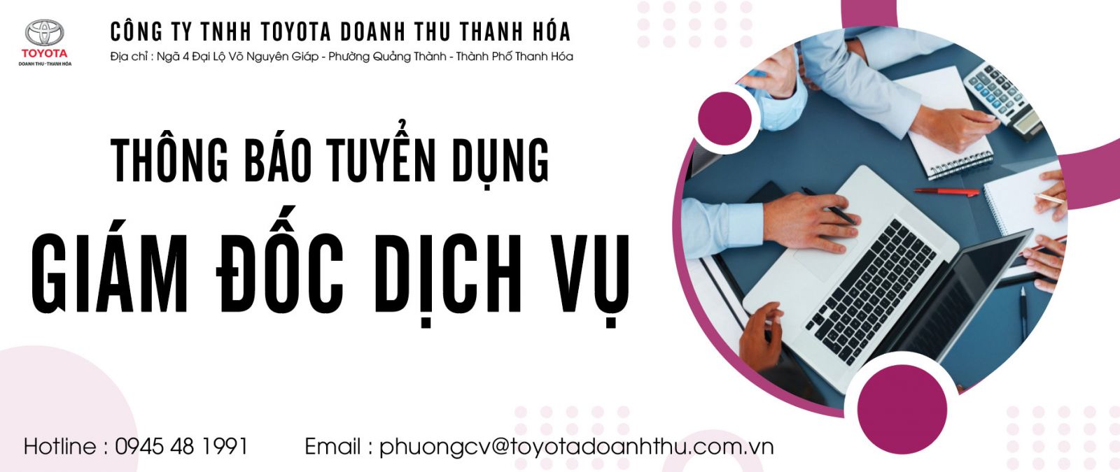 Toyota Doanh Thu- Thanh Hóa thông báo tuyển dụng Giám Đốc Dịch Vụ ngày 06/01/2021