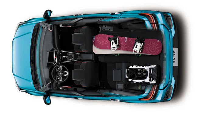 Raize có khoang cabin bố trí 5 chỗ ngồi. Toyota cho biết mẫu xe này có thể tích cốp 369 lít, có thể mở rộng tới 1.133 lít khi gập hàng ghế sau. Trên xe còn có 10 hộc đồ, cho thấy sự thực dụng vốn có của xe Toyota.