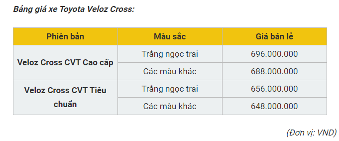 Tương tự Avanza mới, Veloz Cross cũng sẽ được mở bán với 2 phiên bản tuy nhiên chỉ có duy nhất một tùy chọn hộp số D-CVT. Cả 2 phiên bản đều được trang bị động cơ xăng dung tích 1.5L với công suất 105 mã tương tự trên mẫu xe cùng nhà.