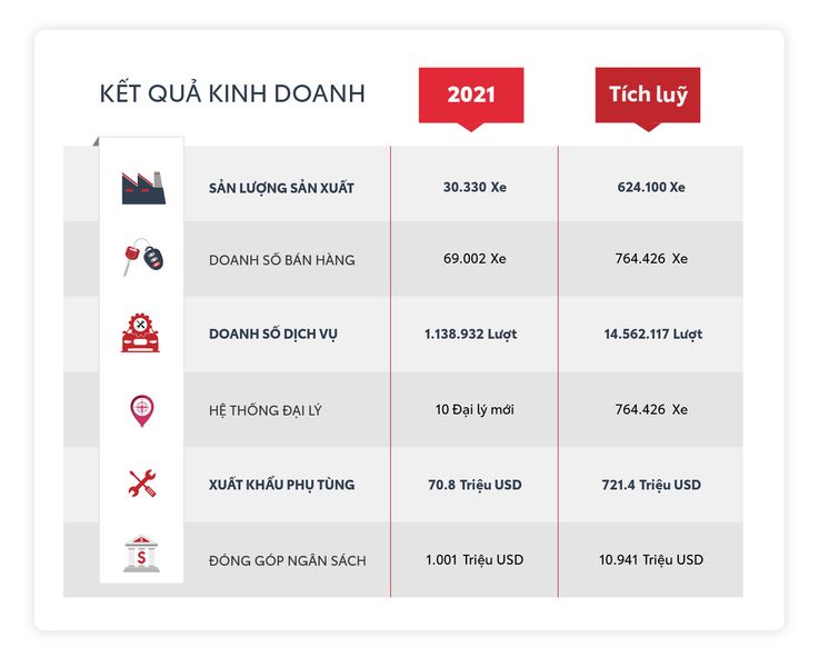 Mặc dù bị ảnh hưởng bởi Covid-19 nhưng Toyota vẫn đảm bảo hoạt động xuất khẩu linh kiện, phụ tùng với doanh thu 70,8 triệu USD, tăng 38% so với năm 2020. Bên cạnh đó, Toyota đã đóng góp 1.001 triệu USD vào ngân sách nhà nước.