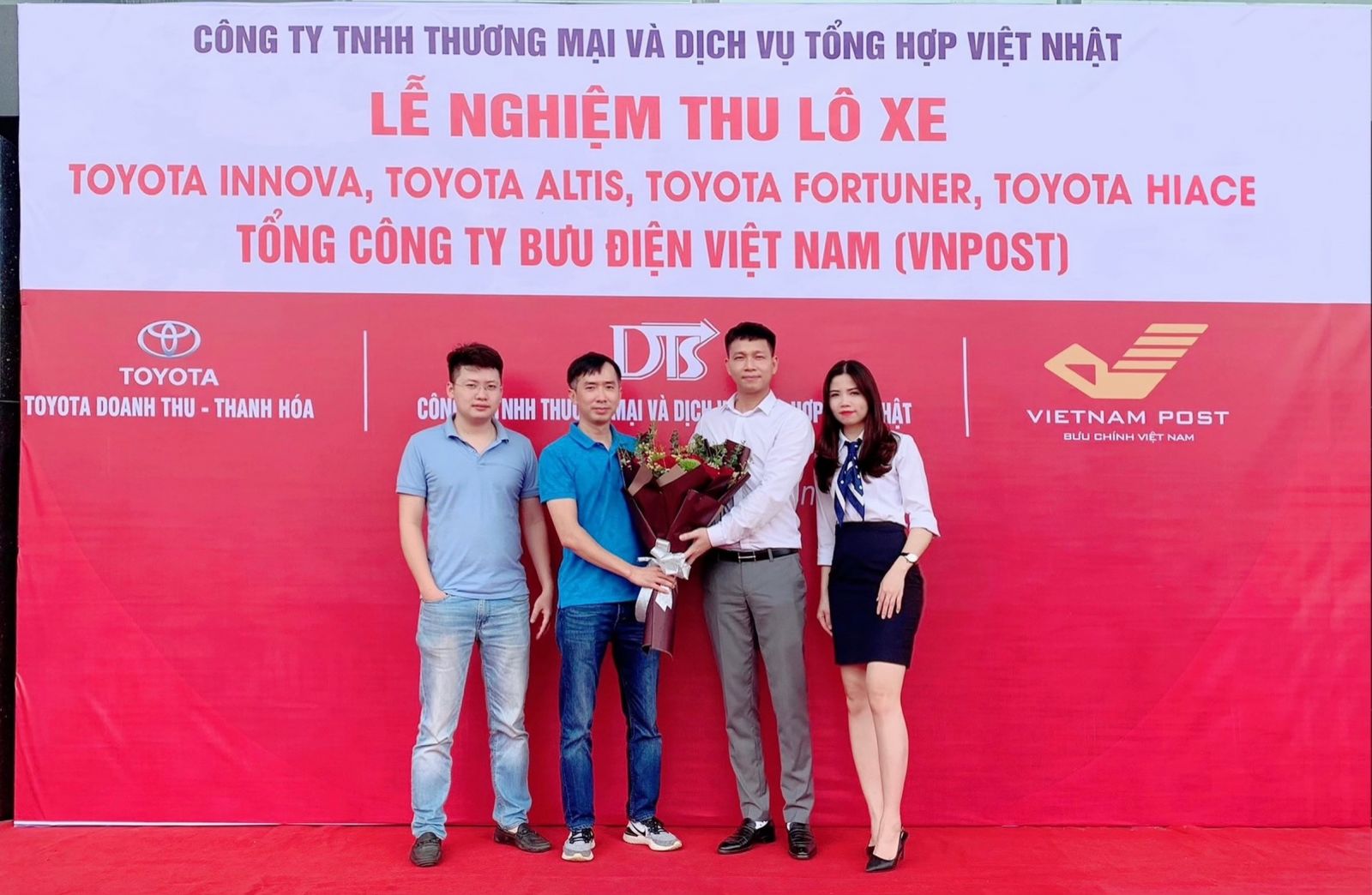 Trước hết Công Ty TNHH Toyota Doanh Thu- Thanh Hóa xin gửi lời cảm ơn sâu sắc tới Tổng Công Ty Bưu Điện Việt Nam (VNPOST) đã tin tưởng lựa chọn sử dụng sản phẩm và dịch vụ của Toyota Doanh Thu- Thanh Hóa. Kính Chúc Tổng Công Ty Bưu Điện Việt Nam ngày càng phát triển, thịnh vượng và không ngừng vươn xa.