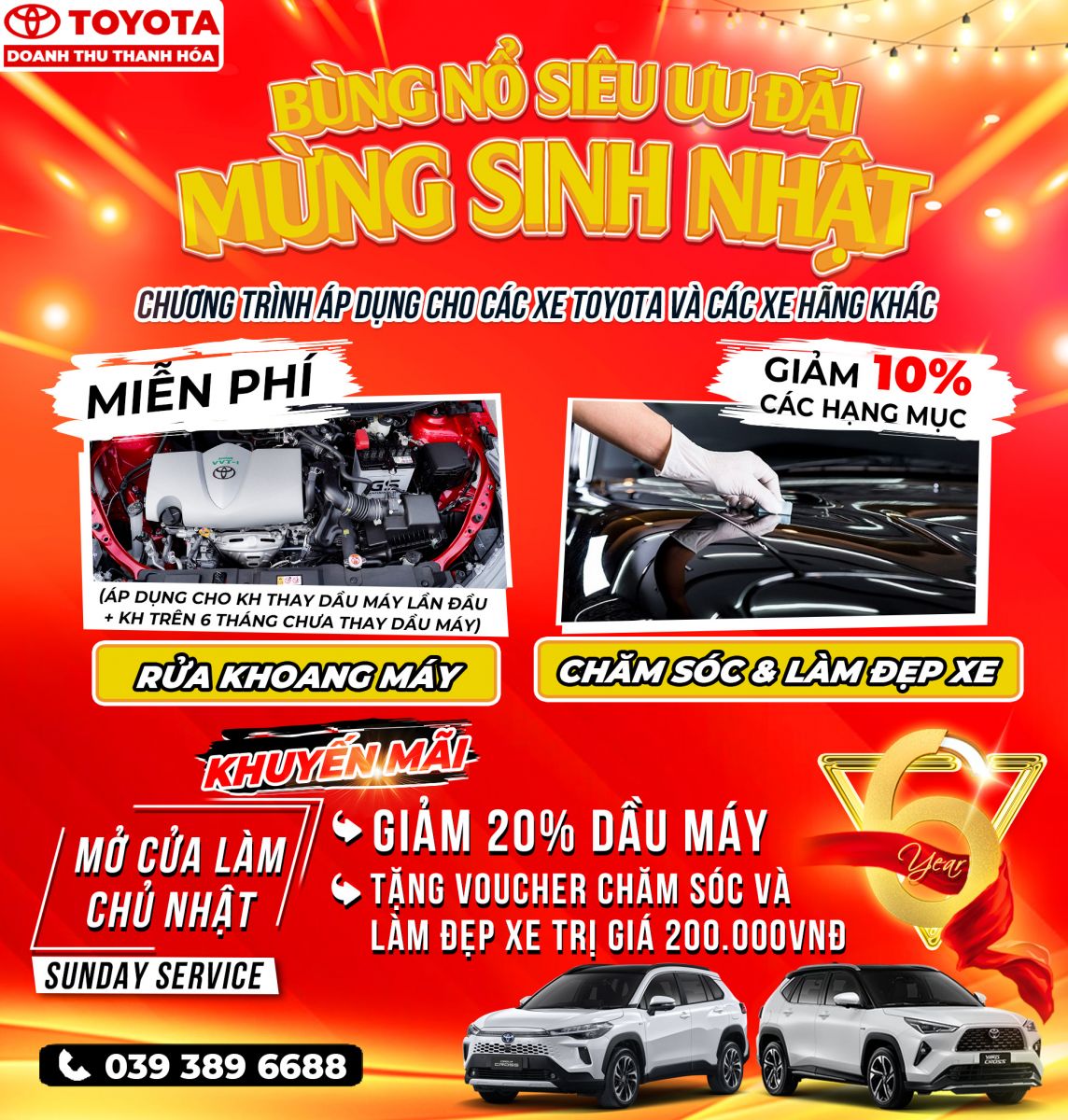 Tưng bừng khuyến mại đỉnh nóc kịch trần mừng sinh nhật Toyota Doanh Thu- Thanh Hóa tròn 6 tuổi. Hàng ngàn ưu đãi,quà tặng giá trị lớn nhất trong năm lên tới hàng trăm triệu đồng