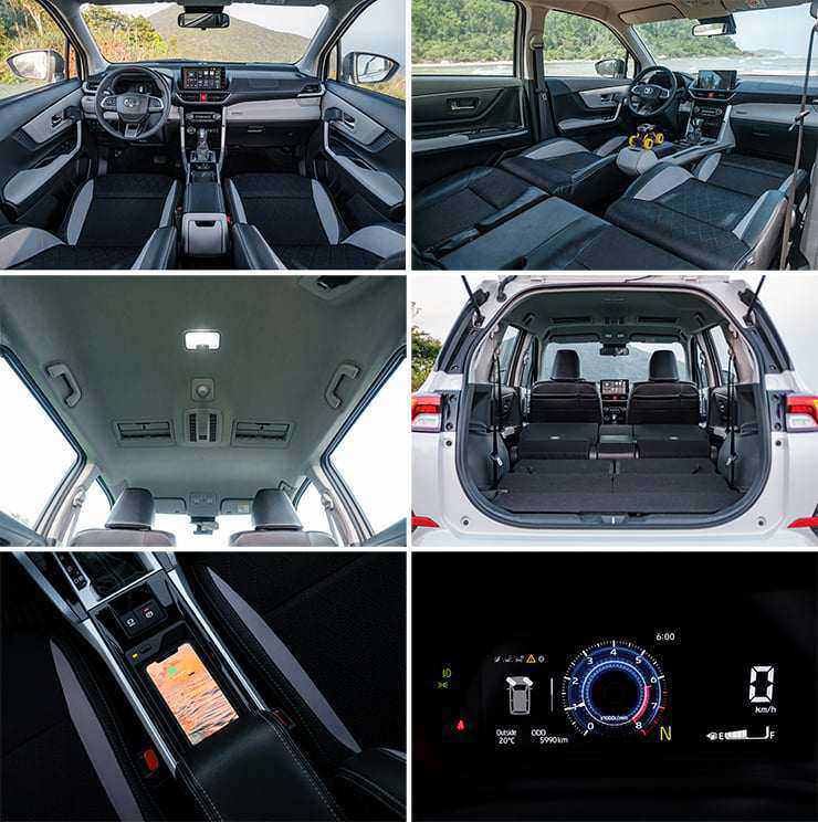 Toyota Veloz Cross sở hữu nội thất trẻ trung và hiện đại, bọc da toàn bộ ghế và phối 2 tông màu đen - kem tinh tế. Xe cũng được trang bị đồng hồ kỹ thuật số kích thước 7 inch, màn hình giải trí đặt nổi 9 inch, hỗ trợ kết nối Apple CarPlay và Android Auto.
