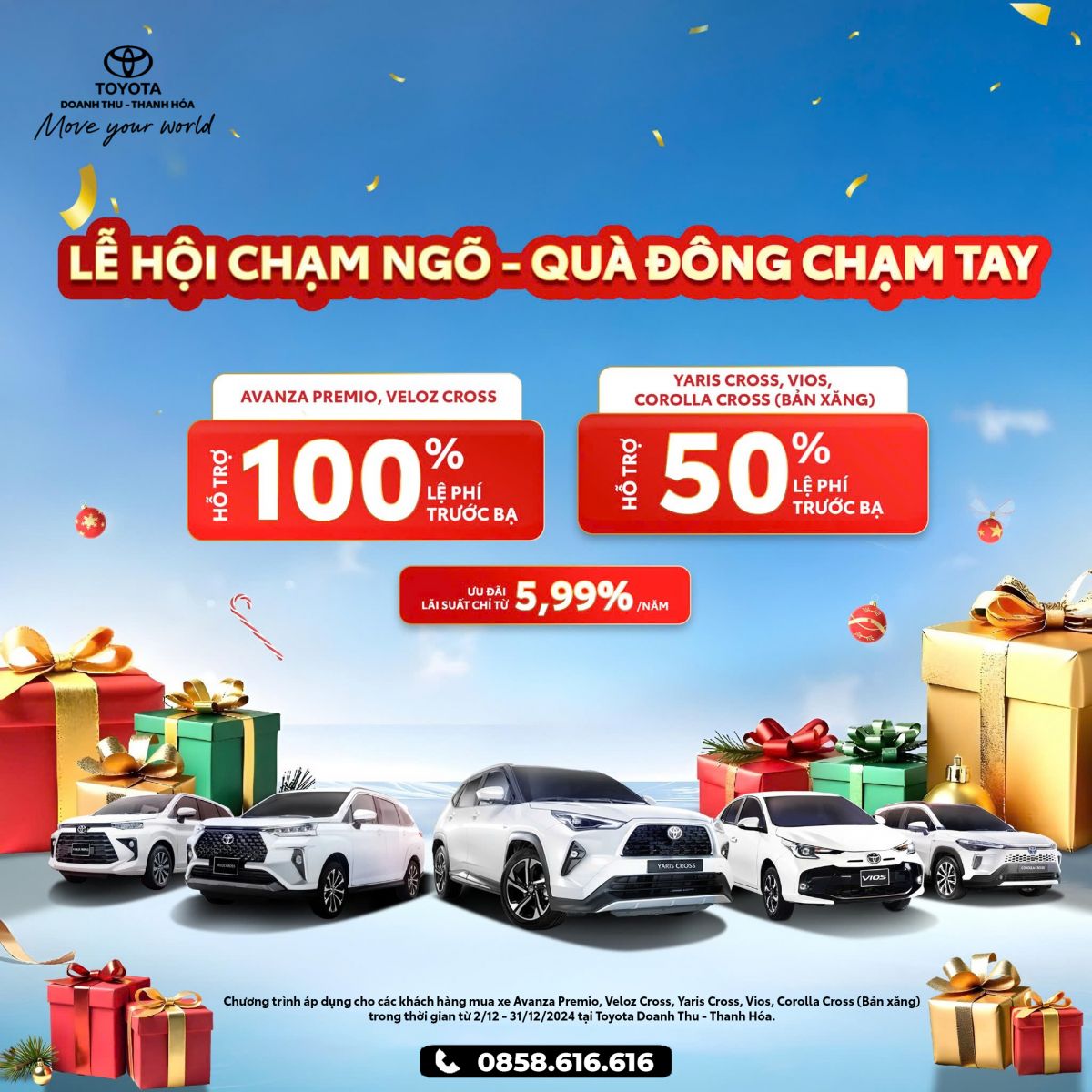 Không còn hỗ trợ từ Chính phủ, Toyota Việt Nam cùng Toyota Doanh Thu- Thanh Hóa vẫn ‘chơi lớn’ hỗ trợ lên đến 100% thuế trước bạ cho khách mua xe trong tháng 12.2024.