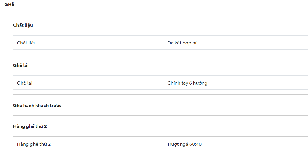 Chất liệu ghế da kết hợp nỉ cao cấp mang lại cảm giác thoải mái, dễ chịu trên mọi hành trình