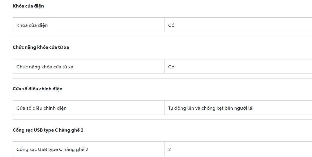 Bố trí cổng sạc ở các vị trí thuận tiện cho mọi hành khách bao gồm cả hai cổng sạc USB ở hàng ghế sau.