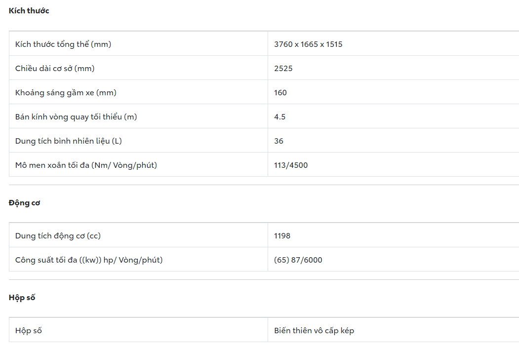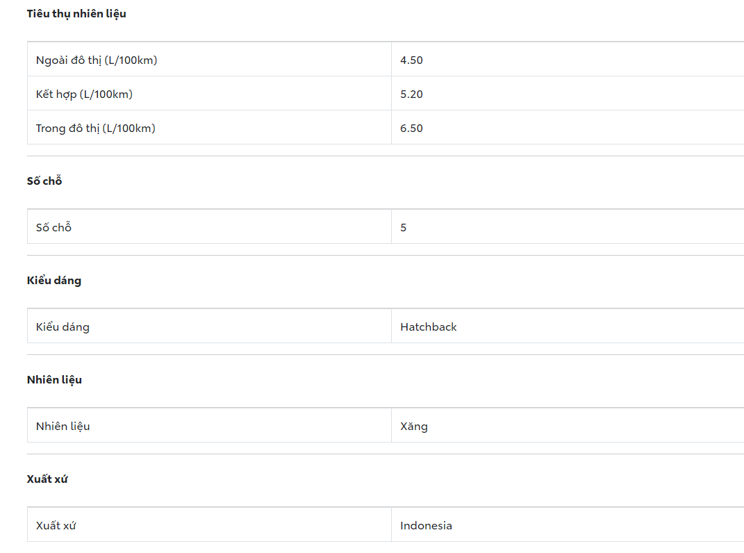 - Kiểu dáng: Hatchback