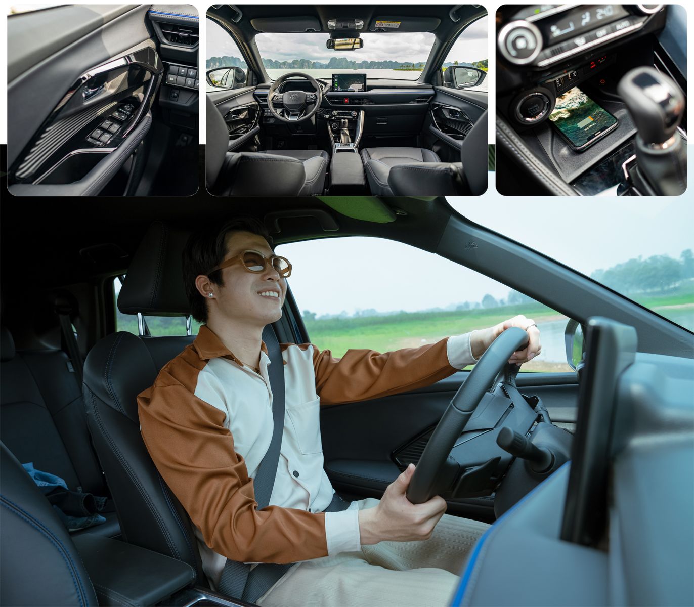 Ở phía người lái, vị trí ngồi cao cho tầm nhìn thoáng đãng, phù hợp khi di chuyển đô thị hàng ngày hoặc những địa hình khó. Với hành khách bên trong, trần xe cao giúp không gian thoáng đãng, đặc biệt ở hàng ghế thứ hai. Yaris Cross cũng là mẫu xe có khoang hành lý rộng rãi hàng đầu phân khúc, với dung tích 471 lít (bản xăng) và 466 lít (bản hybrid), khả năng mở rộng khi gập, ngả hàng ghế thứ hai.
